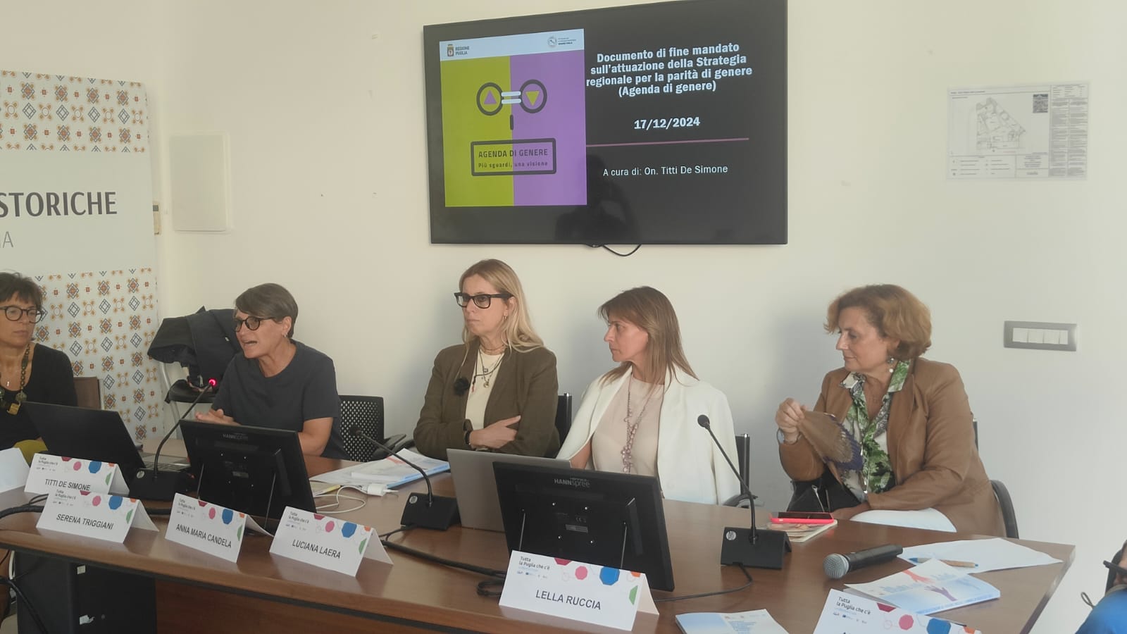 “L'agenda di genere costituisce uno strumento di lavoro – ha fatto sapere la Consigliera di Parità della Regione Puglia, Lella Ruccia -: è un facilitatore dove l'approccio di genere è su ogni profilo, perché le donne non sono una categoria sindacale, un luogo determinato, ma rappresentano l'altra metà del cielo della nostra società. Oggi vogliono partecipare più attivamente nella redistribuzione della ricchezza, vogliono far parte alla vita sociale: ci sono già dentro ma non possono essere ancora limitate da un sistema che non è a loro misura. Misurarsi con una nuova organizzazione sociale e politica è l'obiettivo vero delle politiche di genere e l'agenda di genere della nostra Regione è un valido strumento che ci auguriamo sia adottato in maniera sistemica e sistematica. Come consigliera di parità, di nomina ministeriale, come tutte le consigliere, ricopro un ruolo di monitoraggio e garanzia contro le azioni di discriminazione. L'agenda di genere, in particolare, costituisce uno strumento di mainstreaming efficace, il primo in assoluto ad essere stato adottato da un ente pubblico, di gestione dei fenomeni delle politiche di genere. Oggi presentiamo la pubblicazione della consigliera di parità sul rapporto occupazionale uomini e donne in Puglia: una fotografia che si ferma al 2023 e che rappresenta un bilancio biennale che testimonia un fenomeno sempre costante. Rimane una grande fetta di popolazione attiva tra cui le donne fuori dal mondo del lavoro allora il tema è come affrontare questo problema di equità e riequilibrio sociale ed economico”.