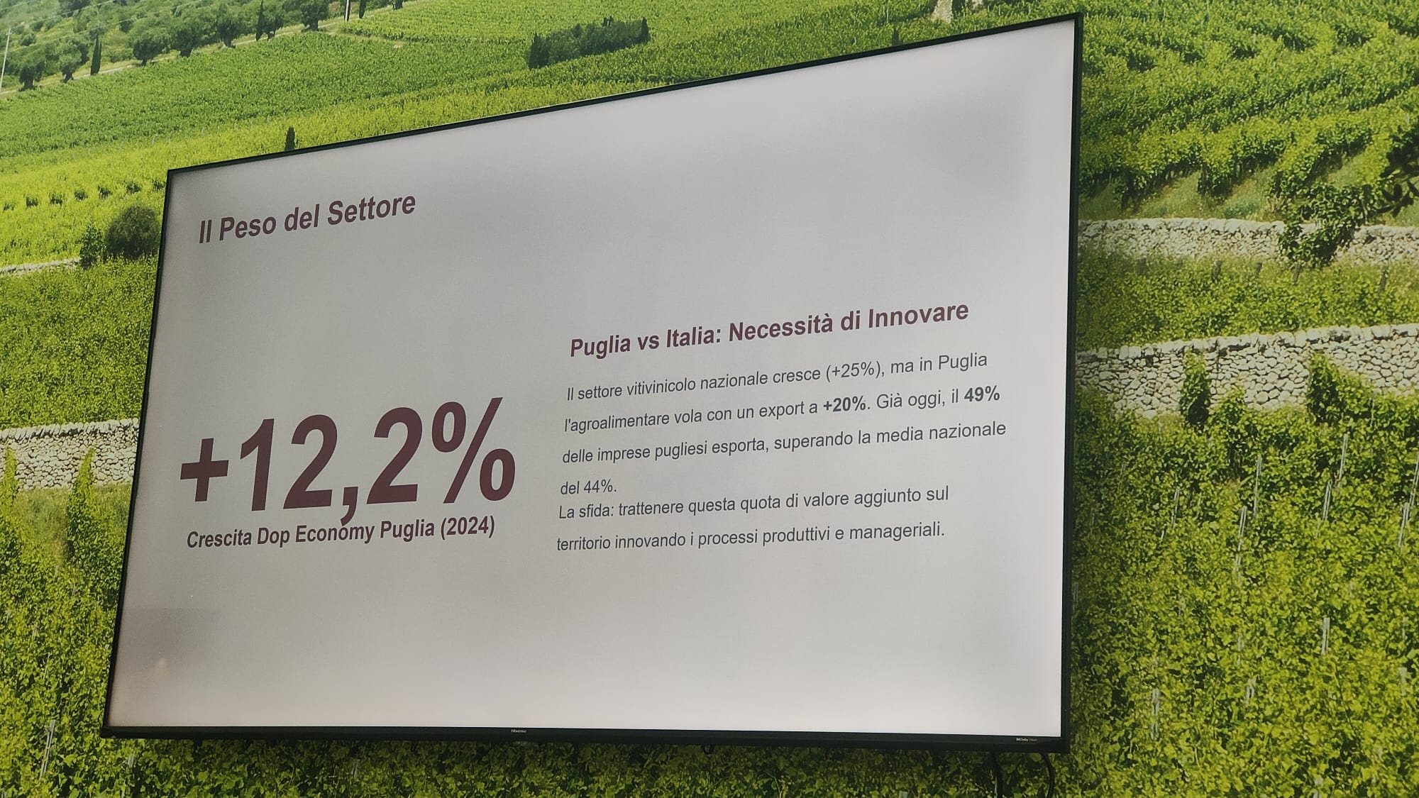 Nel corso della giornata è emersa inoltre la necessità di un linguaggio nuovo, capace di rendere il vino più accessibile alle nuove generazioni, senza perdere il legame con la tradizione. Un percorso che passa anche dalla formazione e dalla capacità delle imprese di trasformare la qualità produttiva in esperienza, rafforzando così il valore del brand Puglia nel mondo.