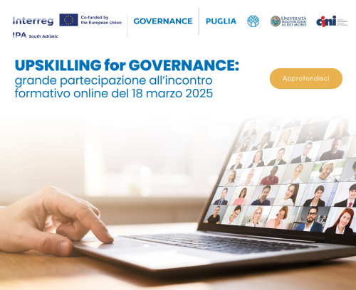 Il Progetto GOVERNANCE - Empowerment and simplification processes for a digital and good governed South Adriatic, finanziato dal Programma Interreg IPA South Adriatic 2021-27, rappresenta un elemento cardine nella strategia di innovazione amministrativa e di rafforzamento della dimensione comunitaria nell'area dell'Adriatico Meridionale.