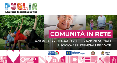 La Regione Puglia promuove azioni per il sostegno, l'iniziativa  e il protagonismo degli Enti di Terzo Settore attraverso due programmi regionali: PugliaCapitaleSociale 3.0 (aperta fino al 7 marzo2023 la terza finestra) e Puglia Sociale IN. (Avviso chiuso)