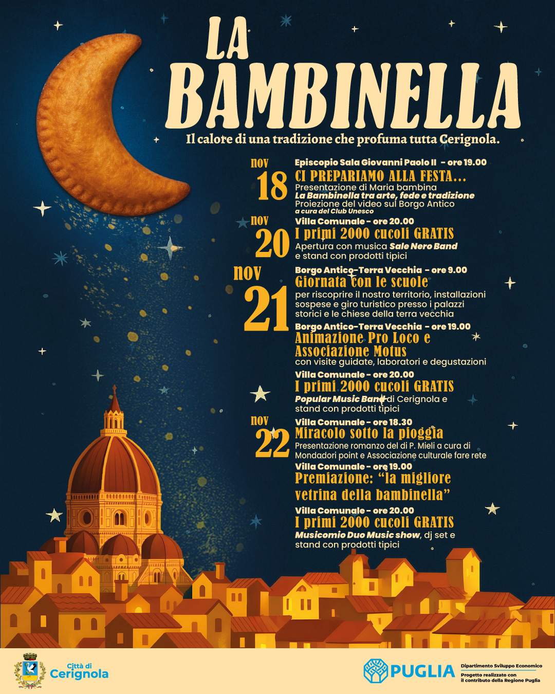 Dal 20 al 22 novembre tra le vie e le piazze di Cerignola si rinnova anche quest’anno l’appuntamento con “La Bambinella”.
