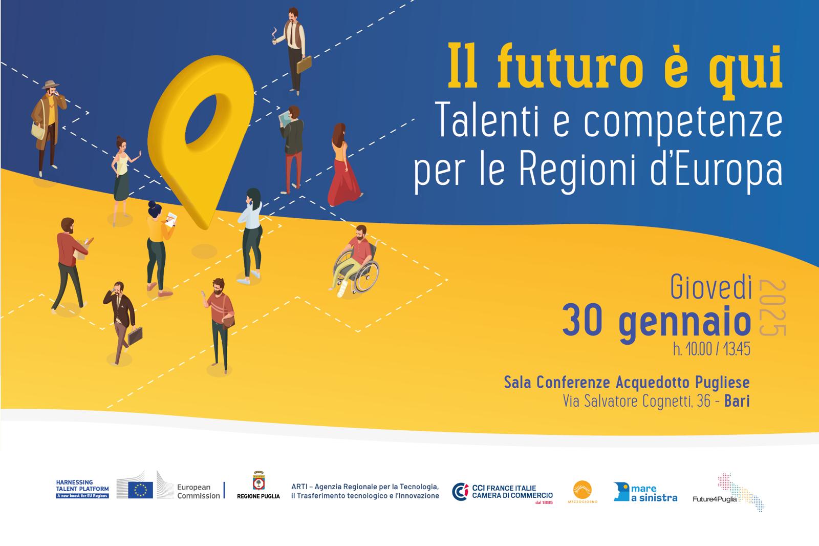 Giovedì 30 gennaio alle ore 10, nella Sala Conferenze di Acquedotto Pugliese, in via Cognetti 36 a a Bari, si svolge l’evento “Il Futuro è qui. Talenti e competenze per le regioni d’Europa”.