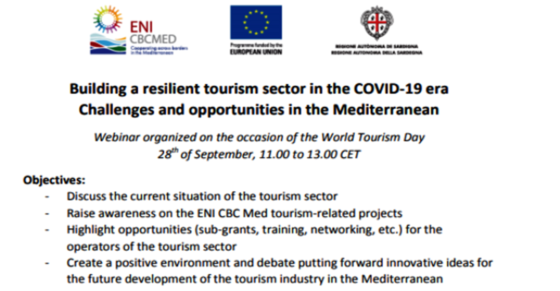 L’iniziativa ha l’obiettivo di aprire un tavolo di confronto sull'attuale situazione del turismo nel Mediterraneo durante la pandemia COVID-19, analizzando come i progetti ENI CBC Med stanno affrontando questa nuova realtà e cosa si potrebbe fare per sostenere un futuro sostenibile del settore.