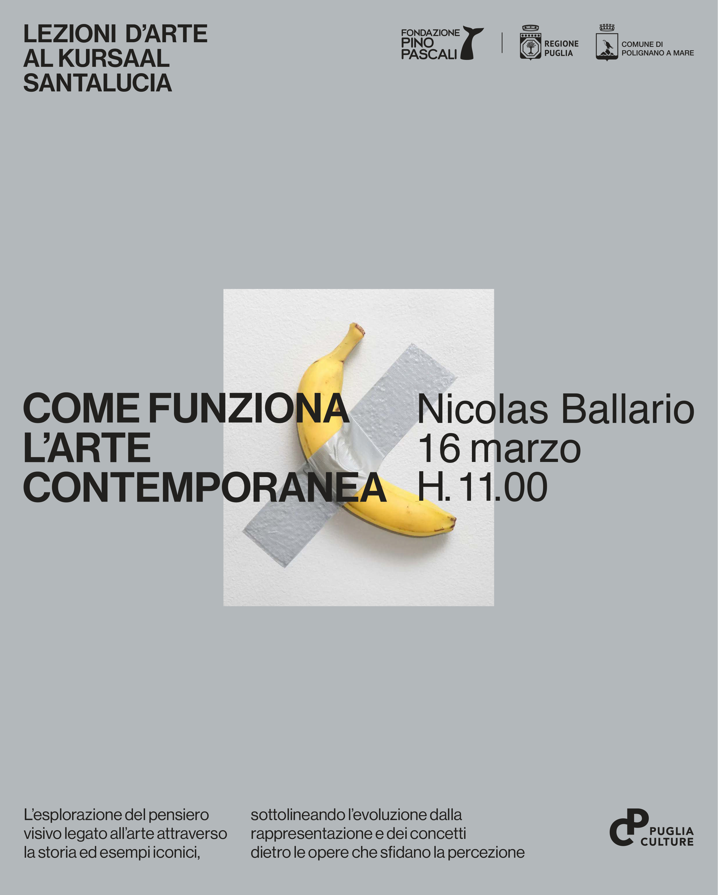Il primo incontro, in programma per il 16 marzo alle ore 11, è con Nicolas Ballario: giornalista, critico d'arte ed esperto del legame tra l'arte e i mass media, Ballario esplorerà il concetto del pensiero visivo legato all'arte, con un focus sull'evoluzione della rappresentazione e dei concetti di cui sono portatori le opere d'arte.