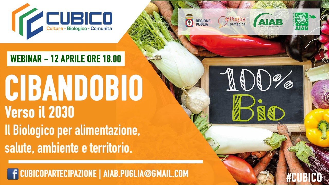 Lunedì 12 aprile 2021, dalle ore 18:00 alle ore 20:00, si terrà un nuovo webinar per il processo Cubico - Cultura Biologico Comunità sul tema “CIBANDOBIO - Verso il 2030 Il Biologico per alimentazione, salute, ambiente e territorio”.