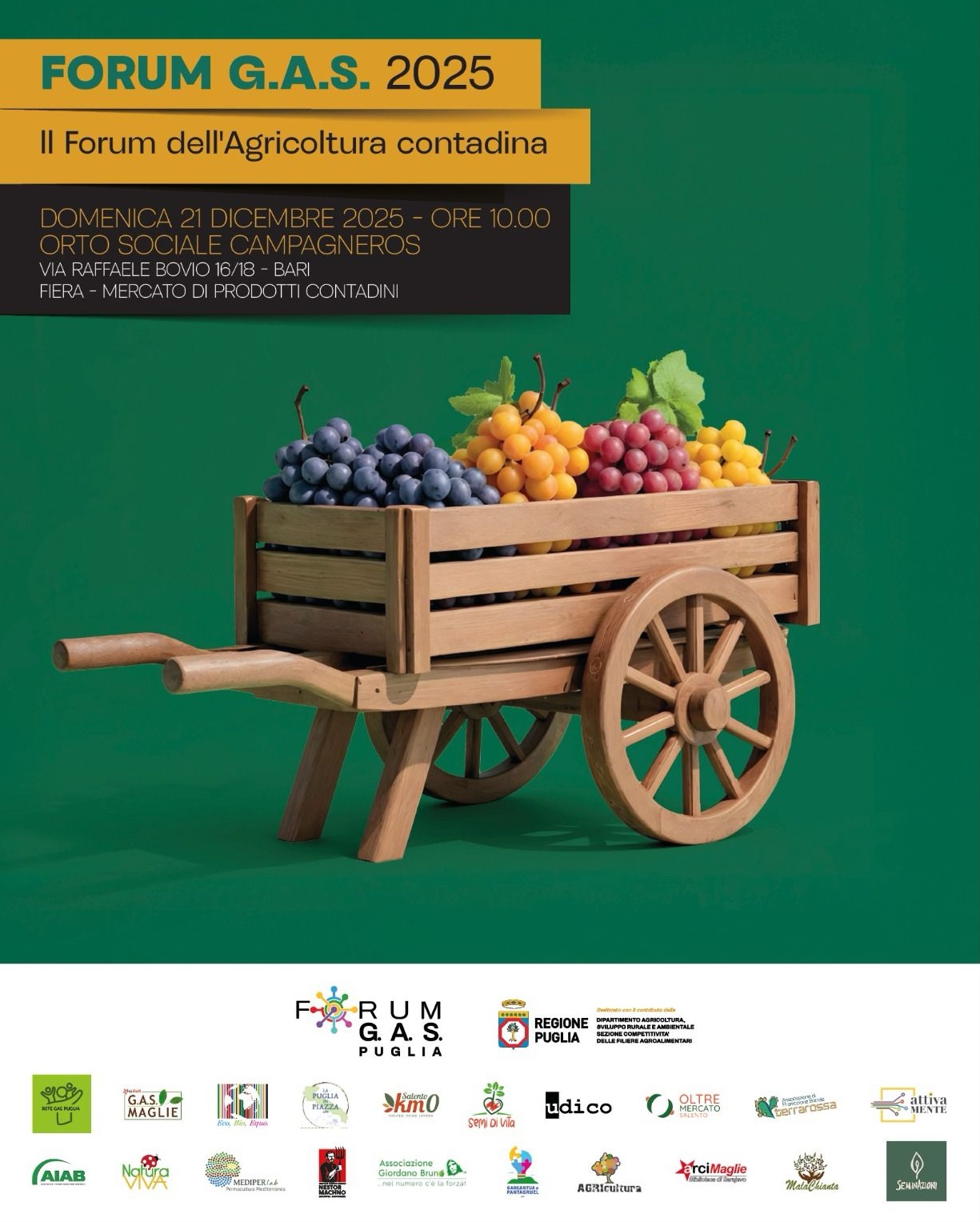 L’iniziativa, realizzata in collaborazione con il Forum GAS della Regione Puglia, rappresenta un’importante occasione di incontro tra cittadini, produttori e realtà impegnate nella valorizzazione della filiera corta, del consumo consapevole e del rispetto dell’ambiente.