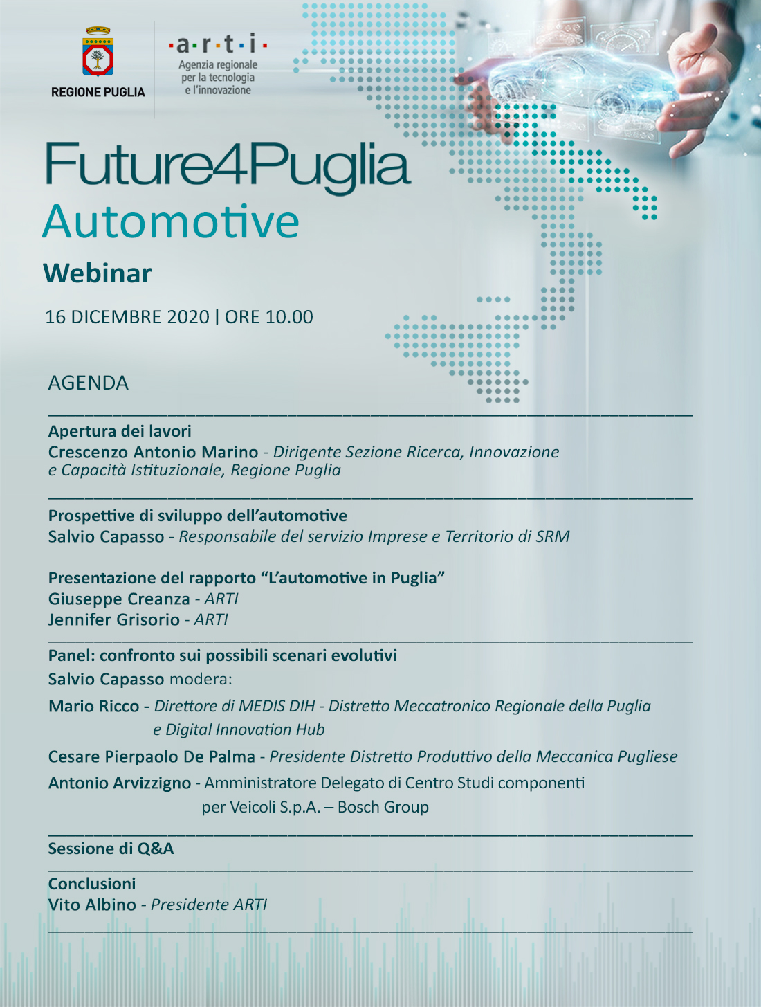Torna l'appuntamento con Future4Puglia: mercoledì 16 dicembre alle 10.00 è la volta del webinar dedicato all'automotive.