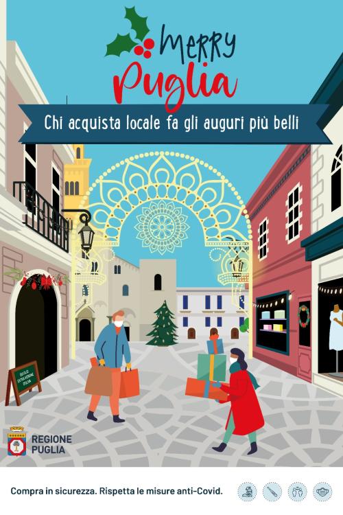 “MerryPuglia – Chi acquista locale fa gli auguri più belli” è la campagna di sensibilizzazione promossa dalla Regione Puglia per sostenere il commercio locale e artigianale. Un invito, un gesto semplice e concreto, un regalo alla propria comunità. E un messaggio chiaro: privilegiare il commercio di prossimità e non solo a Natale.