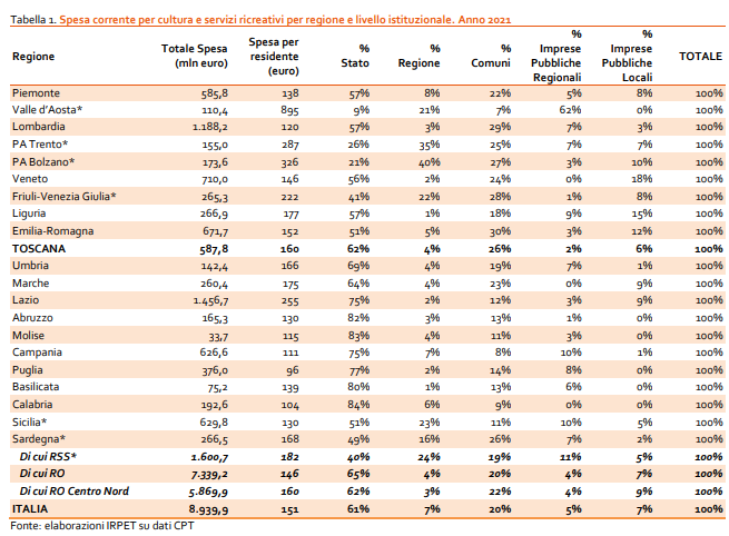 IRPET. La spesa regionale per la cultura. Anno 2021