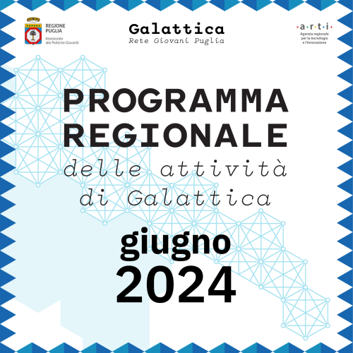 Galattica - Rete Giovani Puglia è la nuova iniziativa della Regione Puglia, a cura della Sezione Politiche Giovanili e di ARTI - Agenzia Regionale per la Tecnologia e l’Innovazione, diretta a fornire ai giovani pugliesi servizi per l'informazione, l'accompagnamento e il supporto all'attivazione ed a promuovere azioni di animazione territoriale tra pari, all'interno di spazi pubblici già destinati ad accogliere iniziative a favore del mondo giovanile.