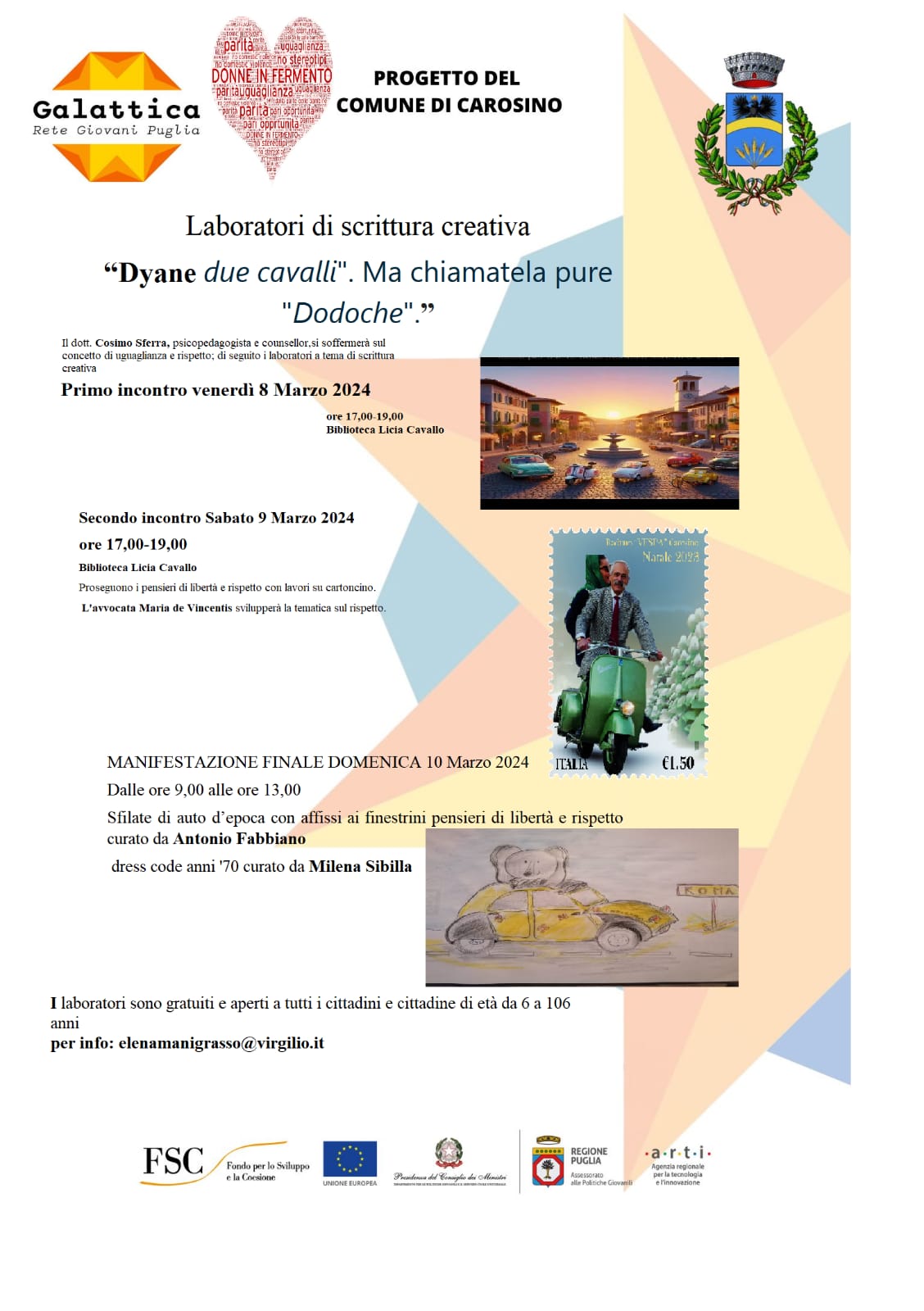 Il Laboratorio di scrittura creativa, progetto organizzato dal comune di Carosino è finalizzato alla discussione e sensibilizzazione del rispetto, uguaglianza e della libertà.