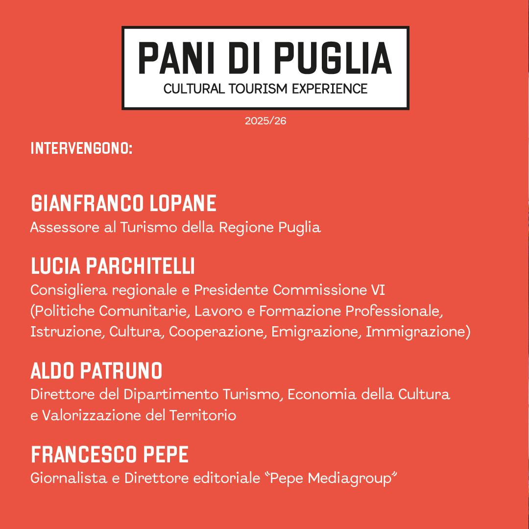 null null Il patrimonio dei pani pugliesi diventa esperienza culturale e turistica A sinistra del testo null null null presentazione Pani di Puglia.jpeg Questa mattina, nel Palazzo di Presidenza...