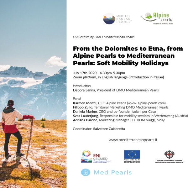 La vacanza oggi si fa in mobilità dolce, dall'arco alpino al bacino del Mediterraneo. Si parla del green tour sulla piattaforma Zoom venerdì 17 luglio 2020, h. 16.30-17.30, nell’ambito del progetto “The Mediterranean as an innovative, integral and unique destination for Slow Tourism initiatives” (Med Pearls).