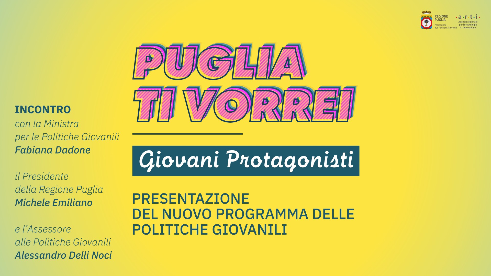 12 missioni, 4 aree di intervento, 14 interventi. E' il Programma delle politiche giovanili 2022-2025 che nasce come risultato del lungo percorso di partecipazione pubblica "Puglia ti vorrei" presentato dall’Assessore Alessandro Delli Noci venerdì 4 marzo a Lecce alla presenza del Capo Dipartimento Politiche Giovanili e Servizio Civile Universale della Presidenza del Consiglio, Marco De Giorgi e della Direttrice dell’Agenzia Nazionale Giovani, Lucia Abbinante.