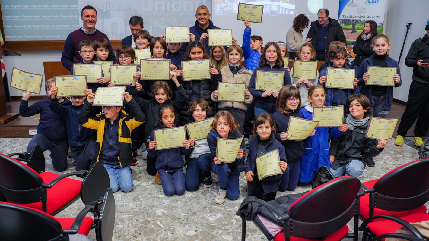 "Biodiversità in Rete" volge a termine: si conclude, così, il progetto di educazione forestale ed ambientale promosso dall’Assessorato regionale all’Agricoltura insieme all’Agenzia Regionale per le Attività Irrigue e Forestali della Regione Puglia (A.R.I.F.), in qualità di soggetto attuatore. L’iniziativa dedicata alle studentesse e agli studenti delle scuole primarie pugliesi, che si sono candidati all’avviso pubblico, si è conclusa con la premiazione delle classi vincitrici lo scorso 13 dicembre 2022 nella sede dell’Assessorato regionale Agricoltura.