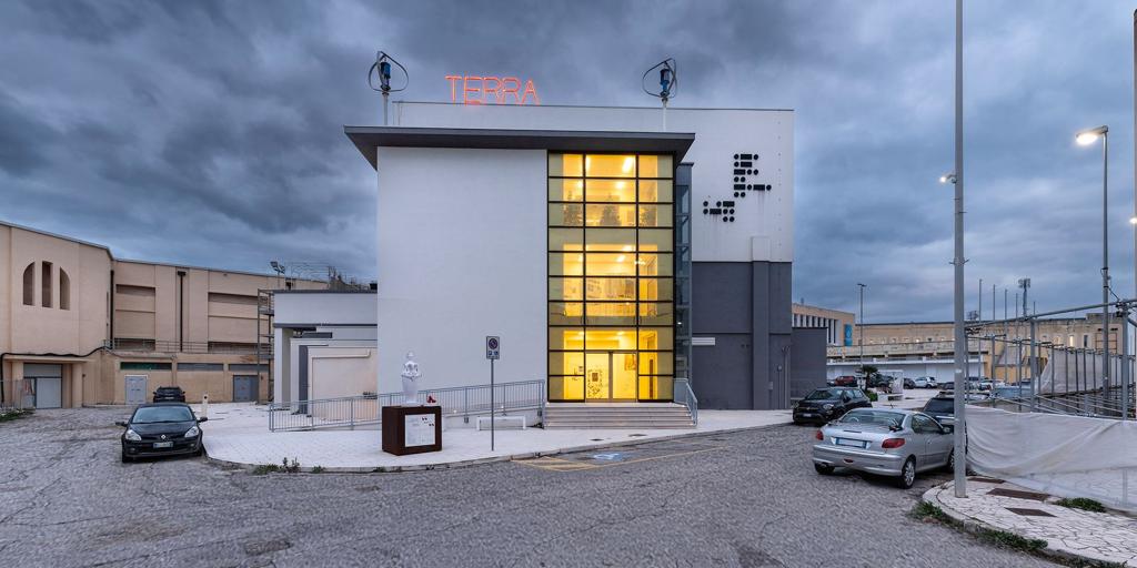 L'opera in.TERRA riflette sull’imprescindibile rapporto che l’uomo ha con il proprio luogo d’origine, quest’ultimo pensato non solo come contesto di appartenenza ma anche traslato nei diversi significati che il sostantivo “Terra” può accogliere: un termine dal carattere semplice, inteso tanto come valore collettivo ma anche con accezione archetipa e simbolica. Sostanza primordiale generatrice delle forme viventi, materia necessaria e imprescindibile all’esistenza, madre di ogni essere vivente di cui è garante e custode, la Terra è anche limite e punto di arresto di quella stessa forza generatrice che da essa promana e perciò suo inevitabile elemento di negazione e contrapposizione. Nella stessa sede è visibile, sulla facciata, anche l'opera site specific Radici e Ali di Jasmine Pignatelli.