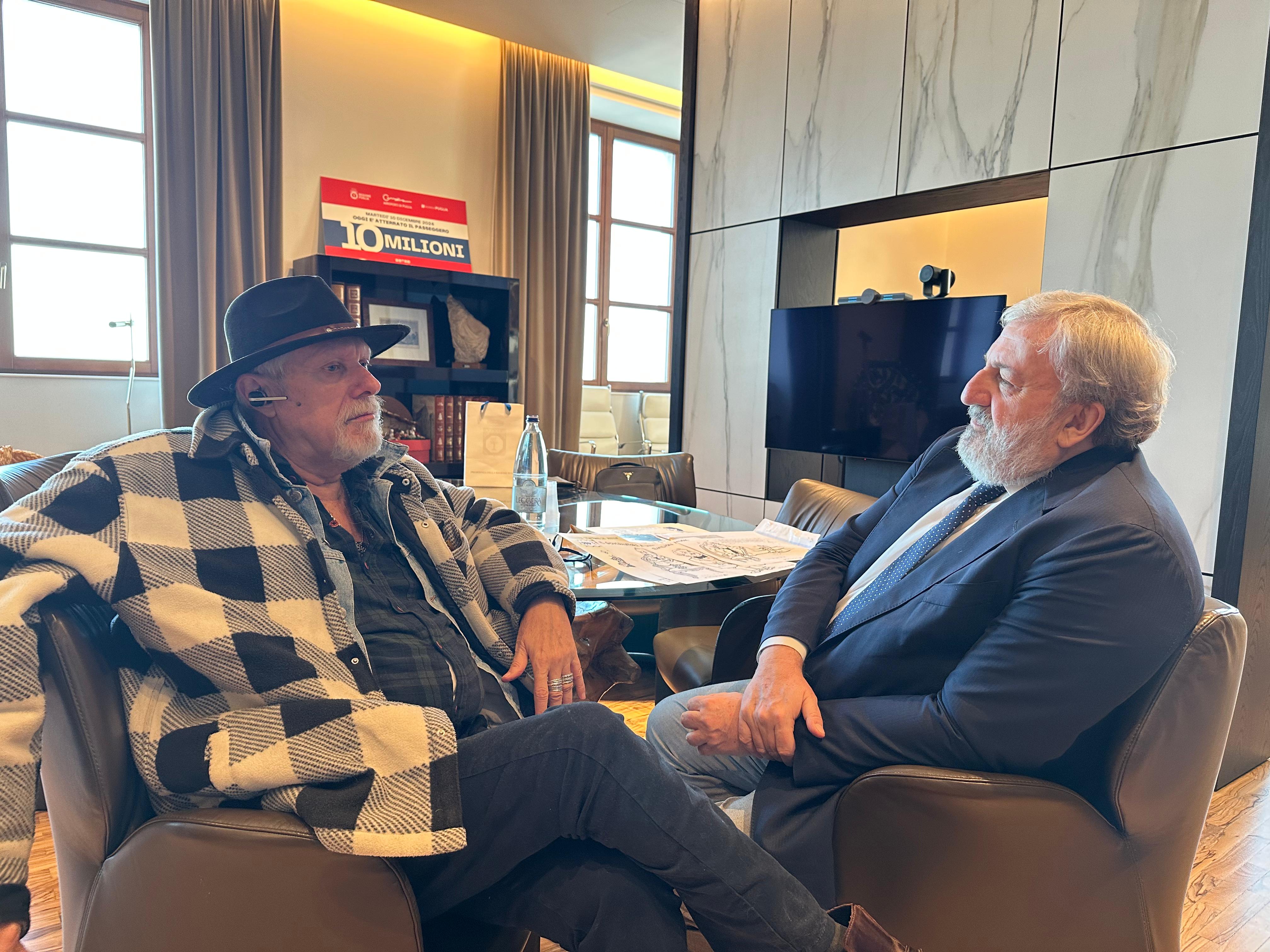 IL PRESIDENTE EMILIANO RICEVE NICO PILLININI: “LE SUE VIGNETTE HANNO SCANDITO LA STORIA DELLA PUGLIA E D’ITALIA”