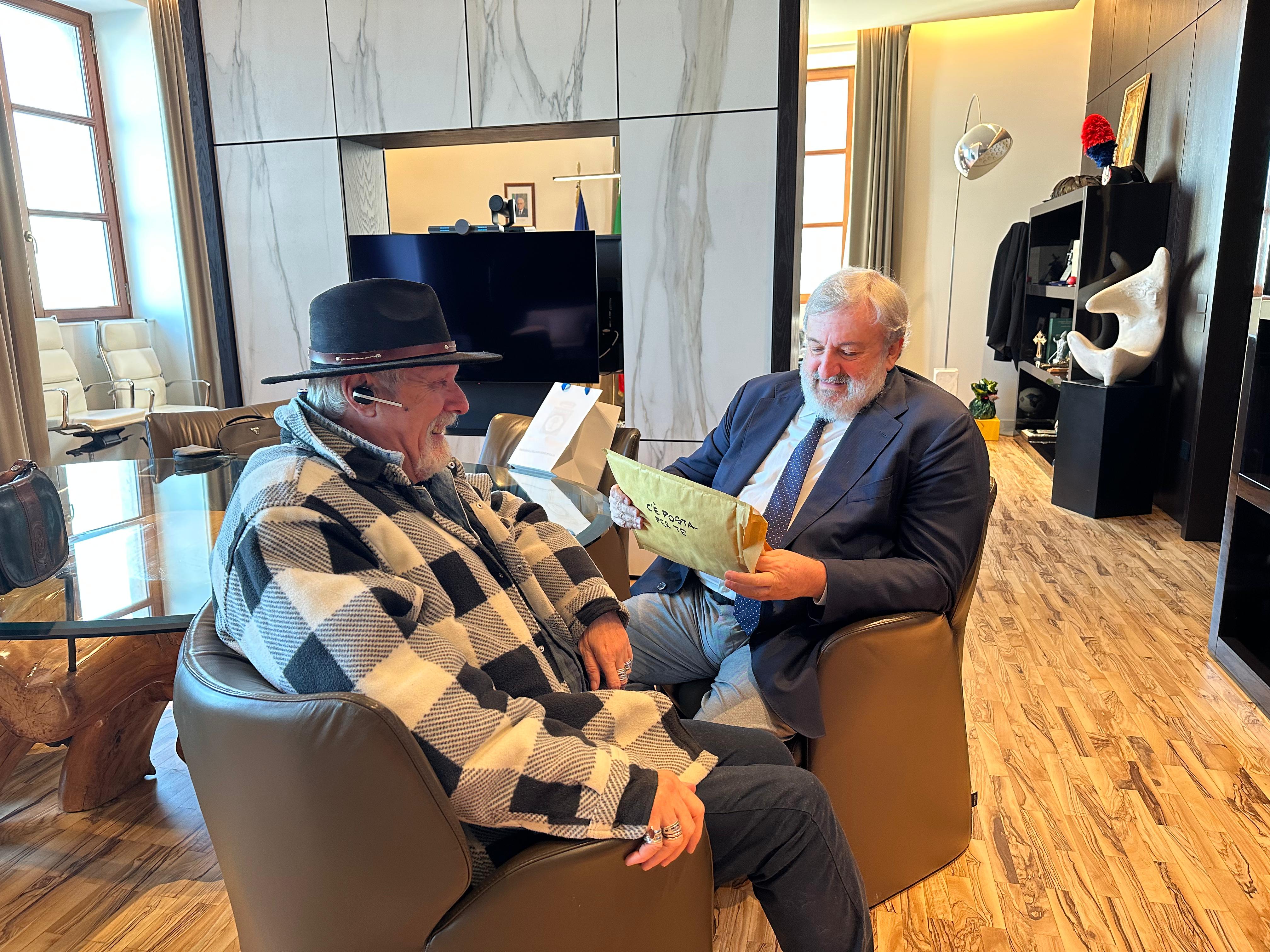 Al termine dell’incontro, c’è stato lo scambio degli auguri. “Sono molto felice conosciuto di aver conosciuto di persona il presidente Emiliano – ha detto Pillinini – un uomo di spirito e di ironia”.