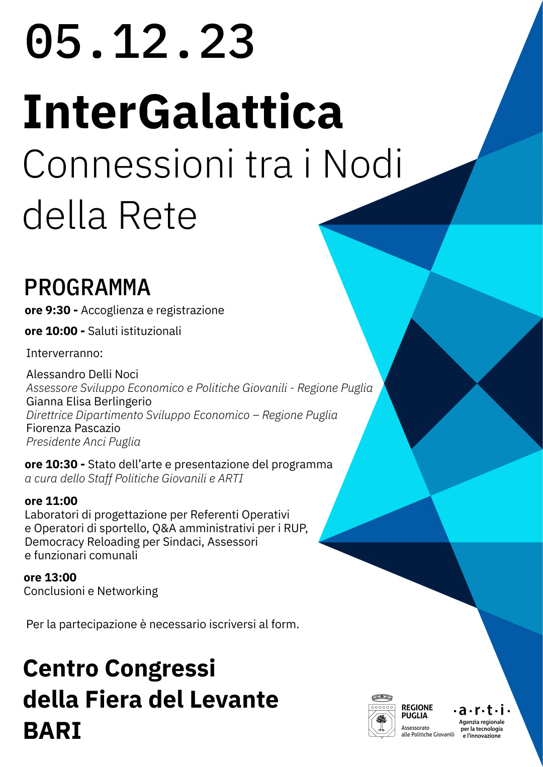 L’evento domani 5 dicembre, a Bari, presso il Centro Congressi della Fiera del Levante, la Sezione Politiche Giovanili, in collaborazione con ARTI