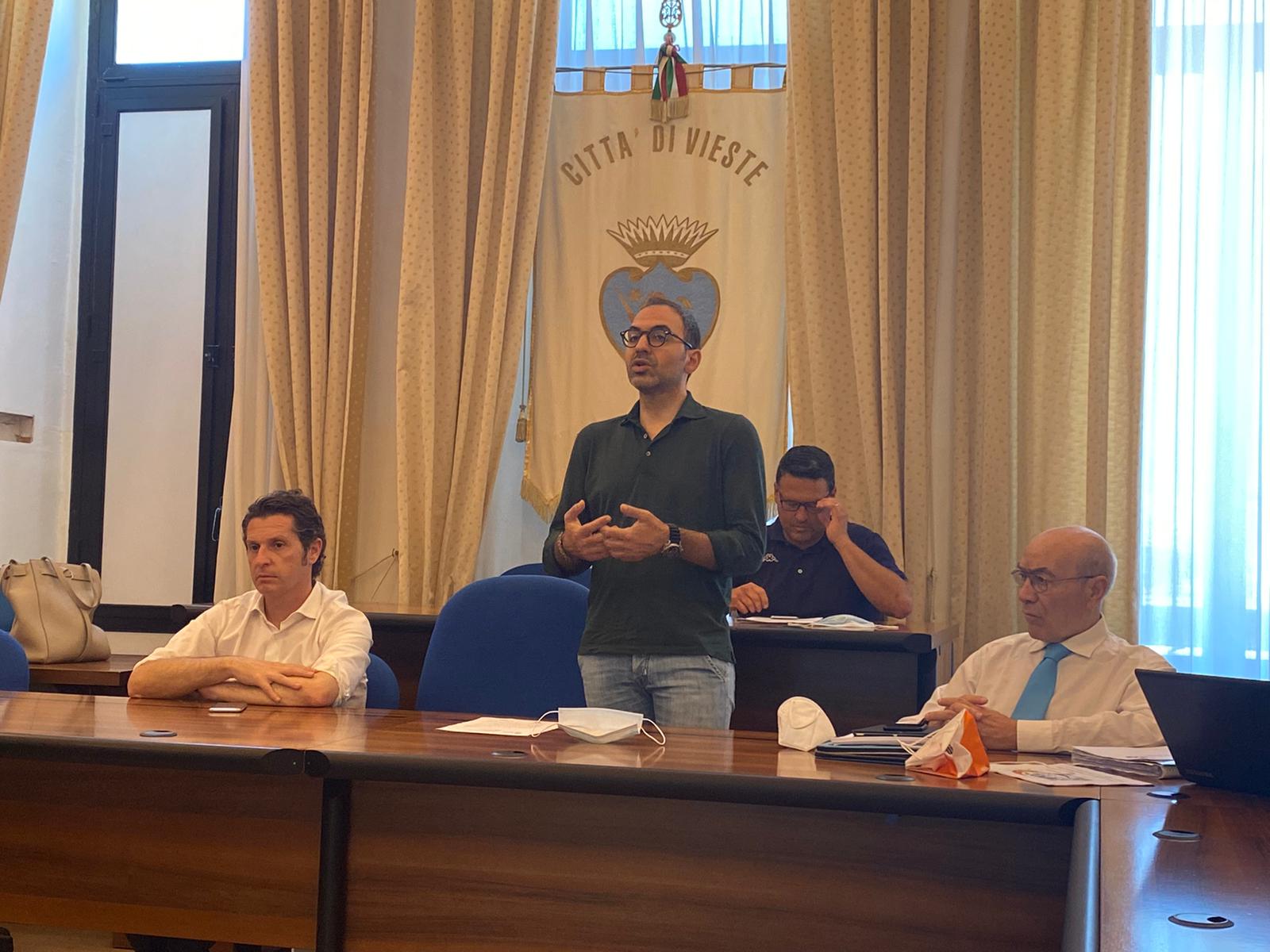 L'assessore Piemontese alla conferenza stampa di questa mattina a Vieste
