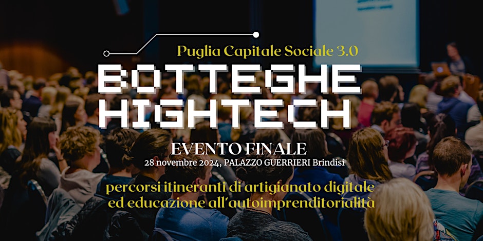 Botteghe High Tech è vincitore dell'Avviso Puglia Capitale Sociale 3.0 e realizzato con la collaborazione di CNA Puglia, CNA Brindisi, CNA Brindisi Srl, Consorzio Mestieri Puglia e la Rete "Case di Quartiere" del Comune di Brindisi.