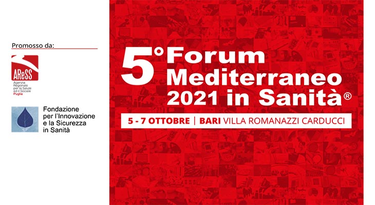 "Piano Nazionale di Ripresa e Resilienza – opportunità di cambiamento della sanità da sud" è il tema del quinto Forum mediterraneo in sanità, che si terrà dal 5 al 7 ottobre presso Villa Romanazzi Carducci, a Bari.
