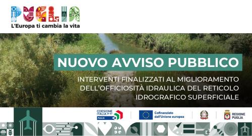 Proroga presentazione istanza di partecipazione - Nuovo Avviso per la selezione di interventi finalizzati al miglioramento dell’officiosità idraulica del reticolo idrografico superficiale (PR Puglia FESR-FSE+ 2021-2027 - sub-Azione 2.5.3)