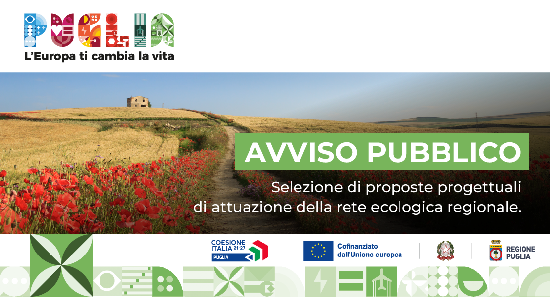 Con Atto Dirigenziale n. 22 del 29/01/2026 della Sezione Tutela e Valorizzazione del Paesaggio della Regione Puglia (pubblicato sul B.U.R.P. n. 12 del 12-2-2026), è stata approvata la graduatoria definitiva relativa all’Avviso pubblico PR Puglia 2021-2027 - Priorità II “Economia verde” - Azione 2.13 “ Interventi di infrastrutturazione verde del territorio” - sub- Azione 2.13.1 “Infrastrutturazione verde e potenziamento della continuità ecologica del territorio e della fascia costiera” - Avviso pubblico per la selezione di proposte progettuali di attuazione della rete ecologica regionale.