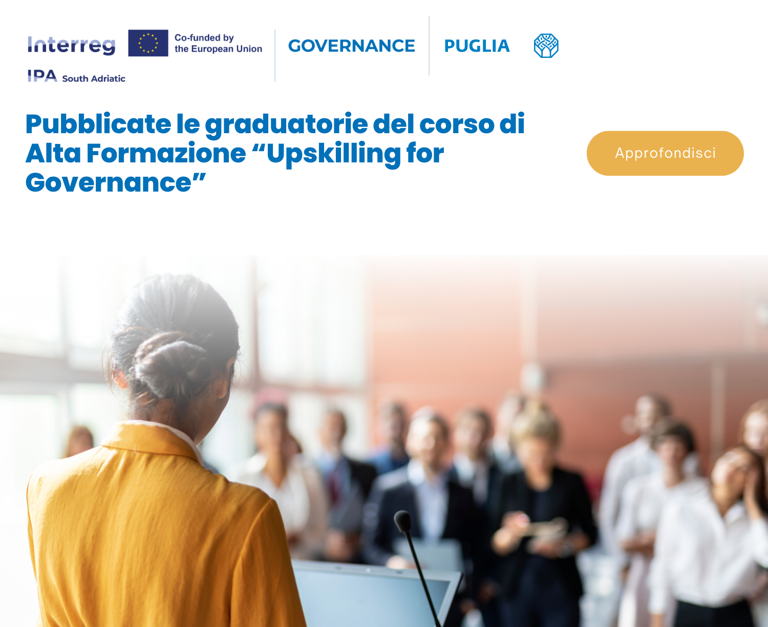 Pubblicate le graduatorie del corso di Alta Formazione “Upskilling for Governance”, iniziativa del Progetto Interreg GOVERNANCE dedicata ai Comuni pugliesi