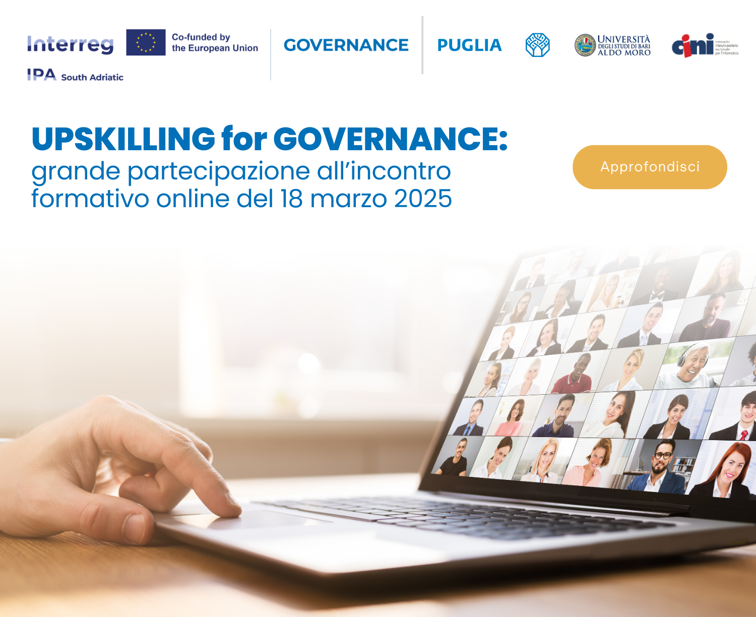 Oltre 50 dipendenti di comuni pugliesi hanno partecipato all’incontro informativo sul corso “Upskilling for Governance”: formazione digitale e cooperazione europea per rafforzare la PA locale