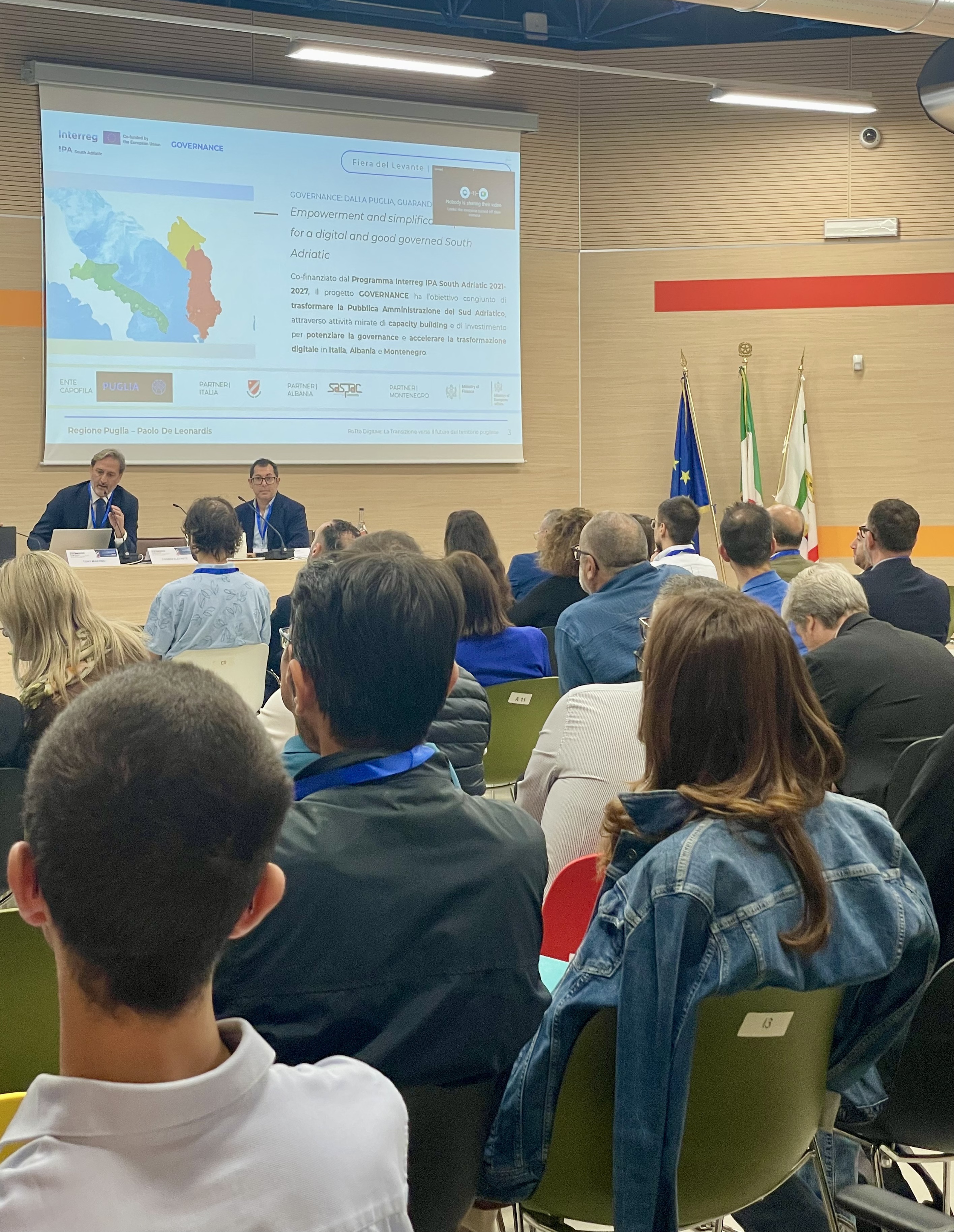 In questo contesto, il progetto Interreg GOVERNANCE – Empowerment and simplification processes for a digital and well-governed South Adriatic, guidato dalla Regione Puglia – Sezione Crescita Digitale delle persone, del territorio e delle imprese - ha preso parte con l’intervento di Paolo De Leonardis, Project Manager del progetto GOVERNANCE, presentando due azioni chiave rivolte proprio agli RTD: