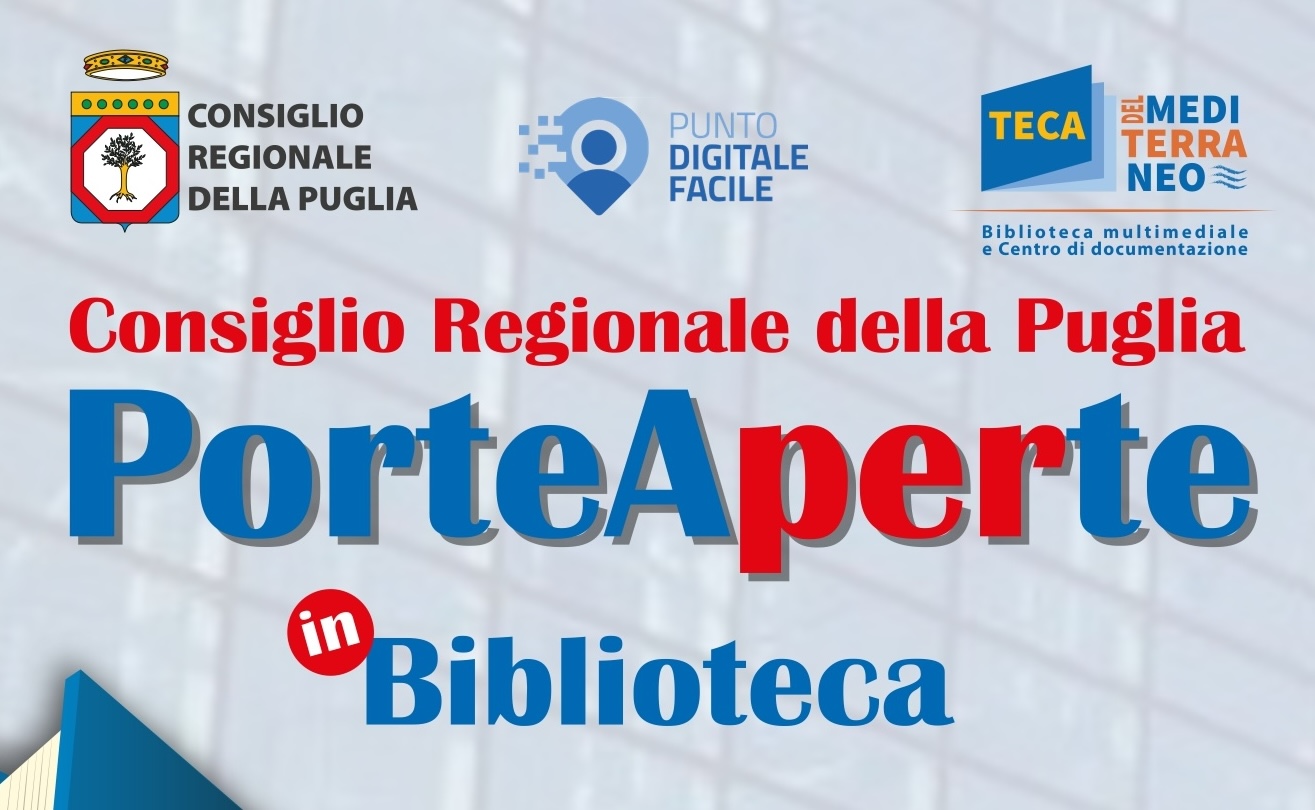 Domani, giovedì 28 novembre 2024, a partire dalle ore 15:00, la Biblioteca del Consiglio Regionale della Puglia “Teca del Mediterraneo” aprirà le sue porte al pubblico in occasione della giornata “PorteAperte”.