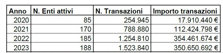 I dati rilevano solo gli enti “attivi sul nodo e che hanno effettuato transazioni”, poiché alcuni enti,anche avendo formalmente aderito, hanno usato partner privati per i pagamenti sul circuito pagoPA.