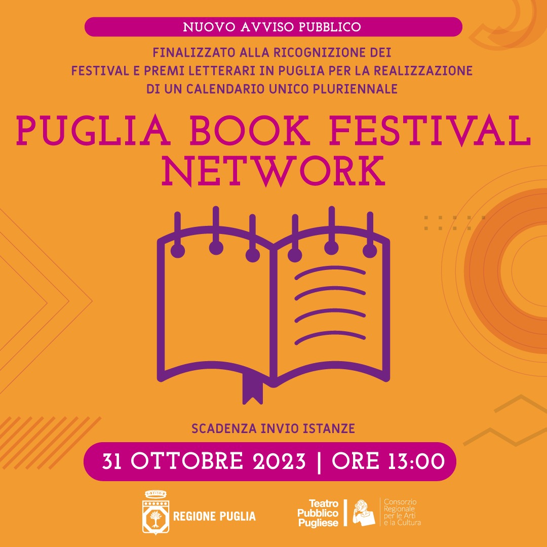 Il Teatro Pubblico Pugliese-Consorzio regionale per le Arti e la Cultura, d’intesa con il Dipartimento Turismo, Economia della Cultura e Valorizzazione del Territorio della Regione Puglia, con il presente Avviso intende effettuare una ricognizione finalizzata a definire un “parco progetti” ed il relativo calendario annuale di festival, e premi letterari realizzati/da realizzare in Puglia nel periodo gennaio- dicembre 2023.