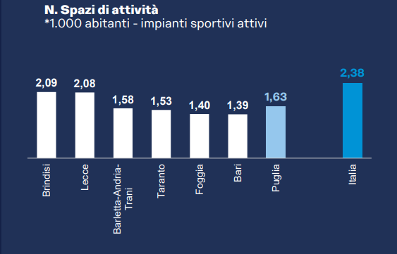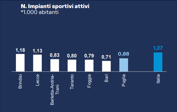 Impianti sportivi attivi, per provincia. Puglia. Anno 2024 (per 1.000 abitanti)