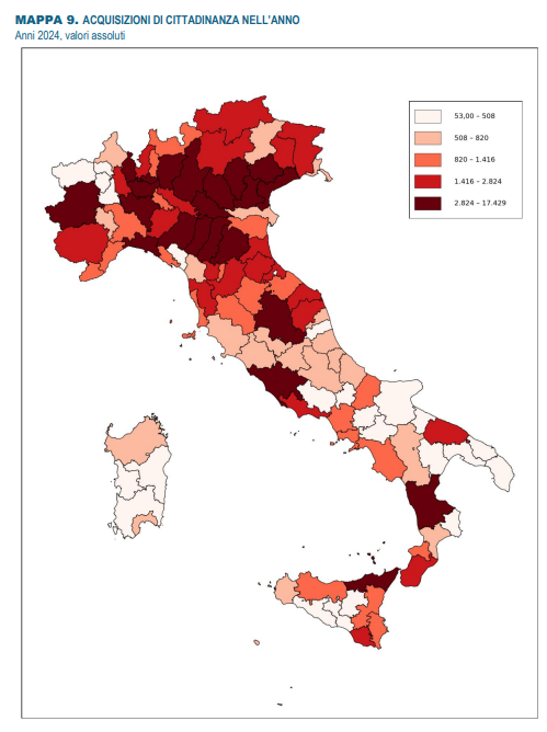 L'Istat pubblica il report e le mappe sulla presenza, nuovi ingressi e acquisizioni di cittadinanza da parte cittadini non comunitari relativo all'anno 2024.