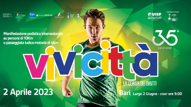 Si terrà a Bari, la mattina del 2 aprile, la 35esima edizione di Vivicittà - la Corsa dei diritti, la tradizionale manifestazione podistica internazionale organizzata dalla Uisp Bari in collaborazione con l’asd Runners Club.