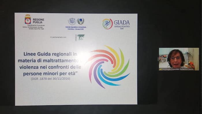 A cavallo tra il 20 novembre, giornata internazionale per i diritti dell’infanzia e dell’adolescenza, e il 25 novembre, giornata che celebra la lotta alla violenza contro le donne, nell'ambito del Focus Group sui modelli di presa in carico dei minori vittime di violenza organizzato il 24 novembre scorso da I.N.T.I.T.(Integrated Trauma Informed Therapy for Children Victims of Violence) e Ministero della Salute, è stata presentata l'esperienza di GIADA ( Gruppo Interdisciplinare Assistenza Donne e bambini Abusati) e del modello pugliese di intervento per la presa in carico delle persone di minore età, vittime di maltrattamento e violenza così come definito dalle “Linee Guida regionali in materia di maltrattamento e violenza nei confronti delle persone minori per età” (DGR 1878 del 30/11/2016). Hanno presentato il modello organizzativo e lo stato di attuazione delle strategie di intervento previste Maria Grazia Foschino Barbaro, responsabile dell'UOSD PSICOLOGIA-GIADA dell'ospedale Pediatrico Giovanni XXIII e Giulia Sannolla, referente per le politiche regionali in materia di contrasto al maltrattamento e violenza presso il Servizio Minori, Famiglie e Pari Opportunità, alla presenza della Ministra Elena Bonetti, della Pari Opportunità e la Famiglia, della Sottosegretaria del Ministero della Salute Sandra Zampa e di un ricco panel di professionisti del settore.