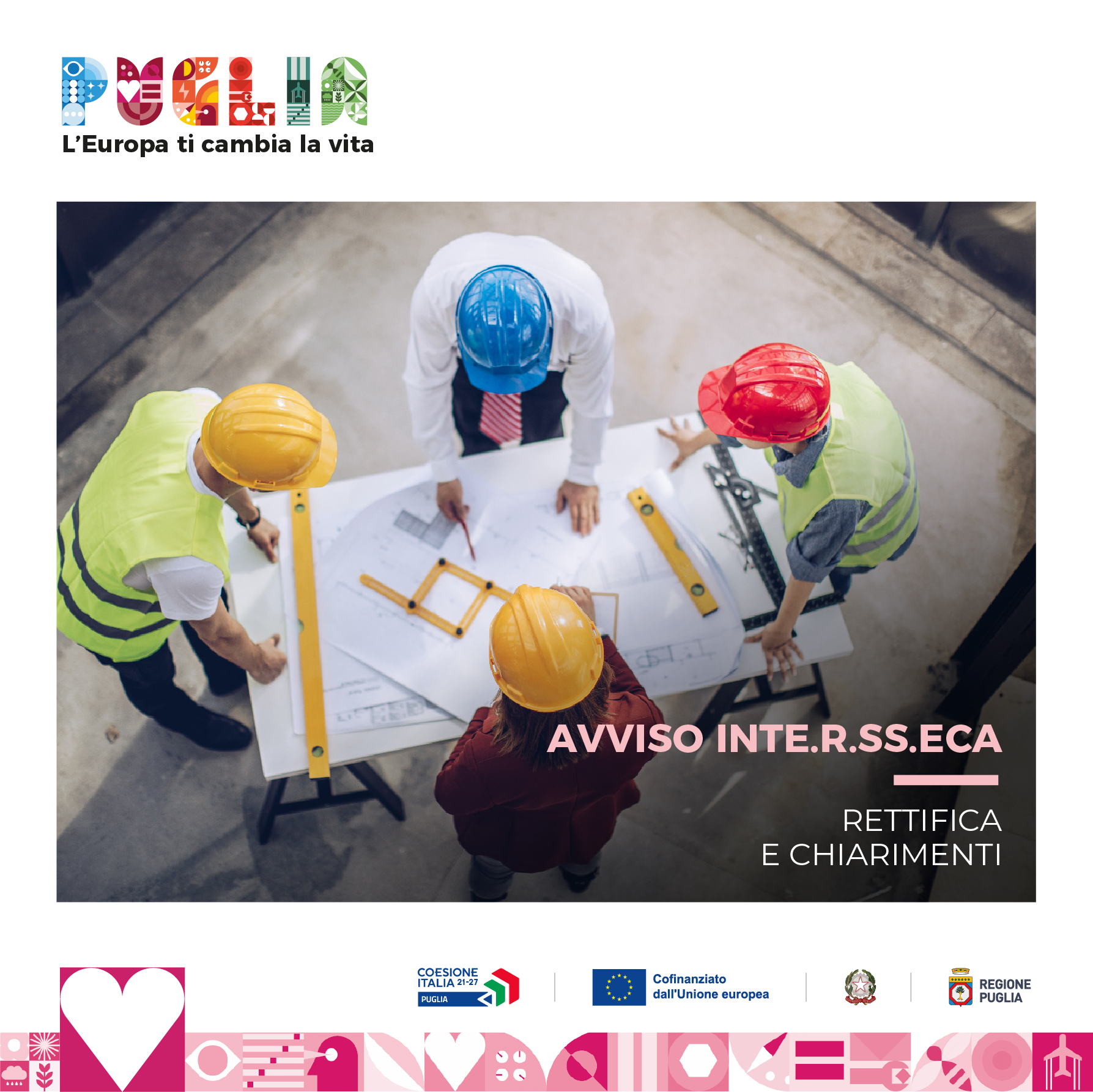 Con Determinazione Dirigenziale n. 811/2024, pubblicata sul BURP n. 50 del 20.06.2024, è stato rettificato l'Avviso pubblico “Inte.R.SS.eca” ed i relativi Allegati al solo fine di esplicitare gli obblighi normativi derivanti dall’applicazione della L.R. n. 13/2008 e s.m.i.
